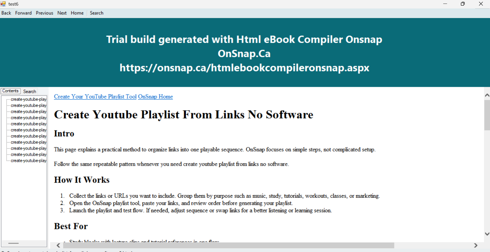 Html eBook Compiler OnSnap is for publishers, trainers, vendors, and businesses that already have HTML-based content and want to package it into a more deliberate Windows experience. Instead of handing over a folder full of files, you deliver a single executable that opens as a structured eBook.